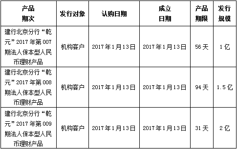 中国建设银行北京市分行定于2017年1月13日发行理财产品,现将相关发行情况公告如下: