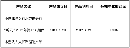 根据与投资者的约定,现将理财产品成立情况信息进行披露: