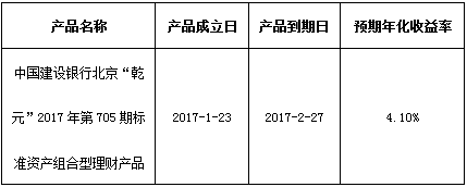 关于中国建设银行北京“乾元”2017年第705期标准资产组合型理财产品成立的公告