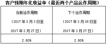 下个运作周期客户预期年化收益率于2017年2月28日(含)开始执行。
