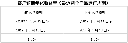 下个运作周期客户预期年化收益率于2017年6月14日(含)开始执行。