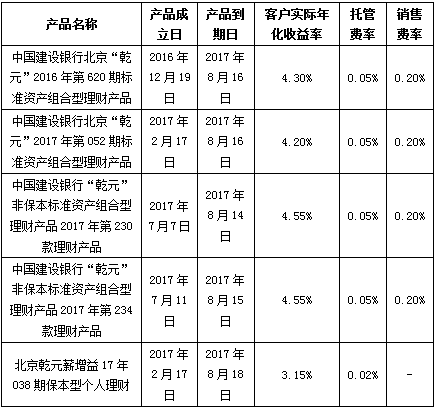 中国建设银行个人类理财产品终止及清算公告2017年8月18日