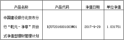 中国建设银行北京市分行“乾元-净享”开放式净值型理财管理计划净值公布如下: