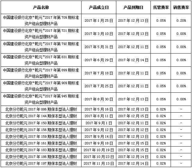 根据与投资者的约定,中国建设银行发行的下列理财产品已经到期并完成资金兑付,现将有关情况公告如下: