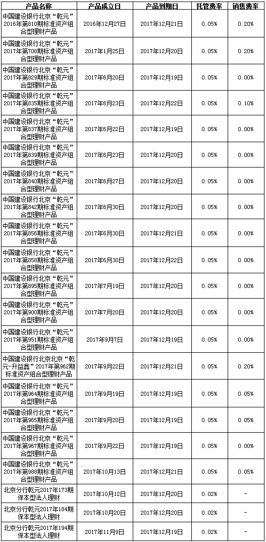 中国建设银行对公类理财产品终止及清算公告2017年12月22日