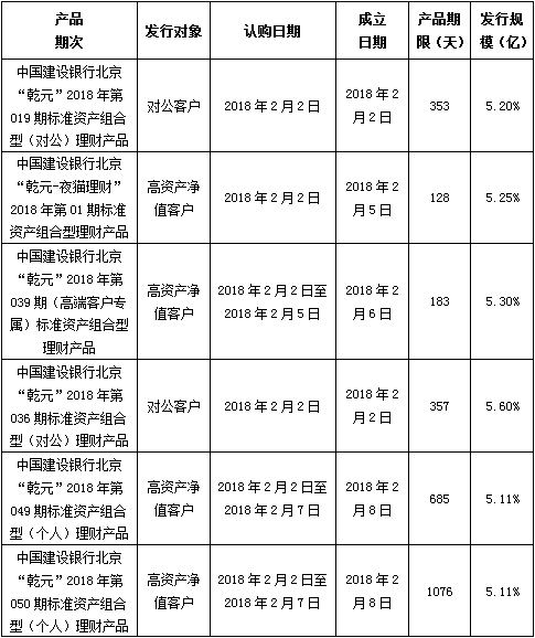 中国建设银行北京市分行定于2018年2月2日发行理财产品,现将相关发行情况公告如下: