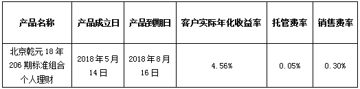 注:上述产品按照说明书中关于资产的投资类型和比例的约定进行投资,所投资非标准化债权资产已进行披露,产品运作收益超出客户实际年化收益率、托管费率及销售费率的部分将作为产品的浮动管理费用。特此公告。