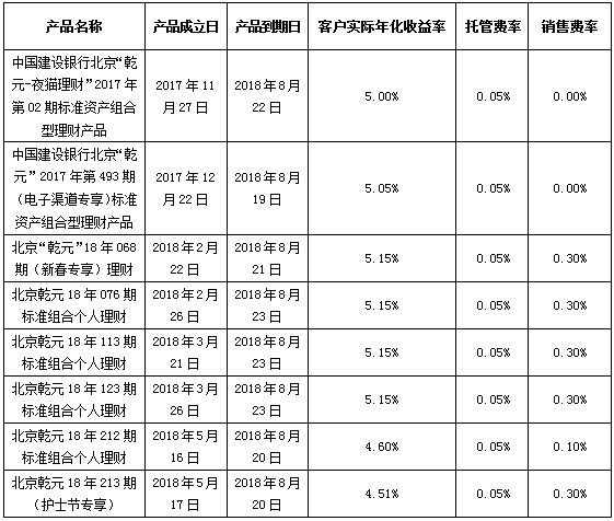 中国建设银行个人类理财产品终止及清算公告2018年8月24日