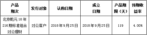 中国建设银行北京市分行定于2018年9月25日发行理财产品,现将相关发行情况公告如下: