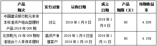 建行北京市分行理财产品发行公告2019年1月8日
