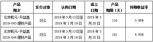 中国建设银行北京市分行定于2019年3月13日发行理财产品,现将相关发行情况公告如下: