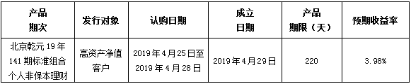 中国建设银行北京市分行定于2019年4月25日发行理财产品,现将相关发行情况公告如下: