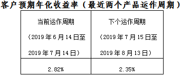 下个运作周期客户预期年化收益率于2019年7月15日(含)开始执行。