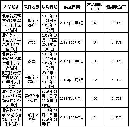 中国建设银行北京市分行定于2019年10月28日至11月1日发行理财产品,现将相关发行情况公告如下: