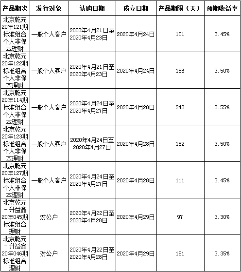 中国建设银行北京市分行定于2020年4月20日至2020年4月26日发行理财产品,现将相关发行情况公告如下: