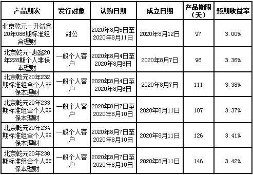 建行北京市分行理财产品发行公告2020年8月10日