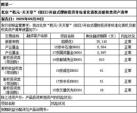 中国建设银行北京市分行“乾元-天天享”(按日开放型)人民币非保本理财产品季度投资管理报告