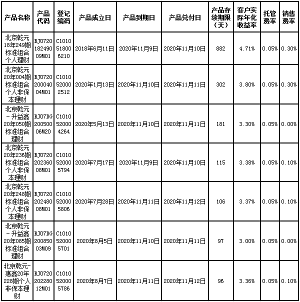 中国建设银行理财产品终止及清算公告2020年11月16日