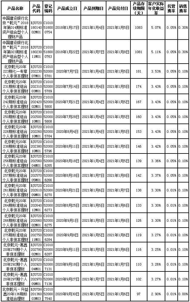 中国建设银行理财产品终止及清算公告2021年1月11日