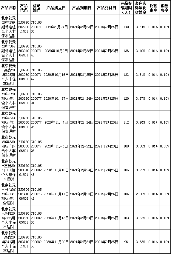 根据与投资者的约定,中国建设银行发行的下列理财产品已经到期并完成资金兑付,现将有关情况公告如下:
