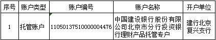 理财产品托管人:中国建设银行股份有限公司北京市分行