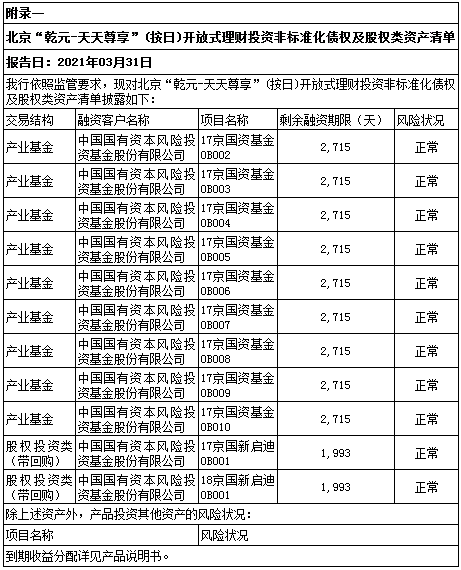 中国建设银行北京市分行“乾元-天天尊享”(按日开放型)人民币非保本理财产品季度投资管理报告