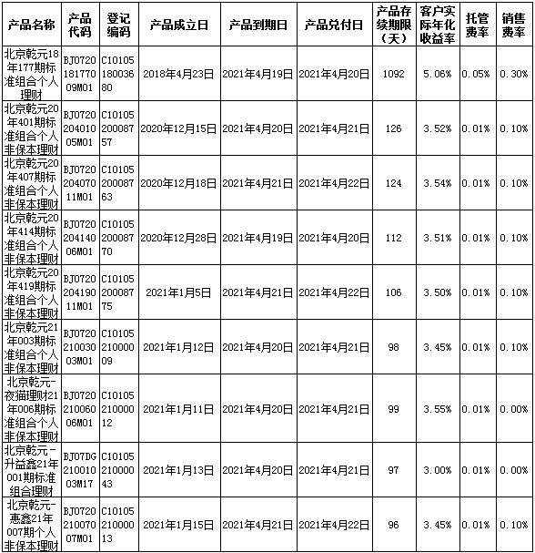 中国建设银行理财产品终止及清算公告2021年4月26日