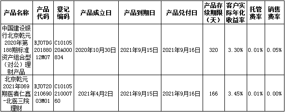 根据与投资者的约定,中国建设银行发行的下列理财产品已经到期并完成资金兑付,现将有关情况公告如下: