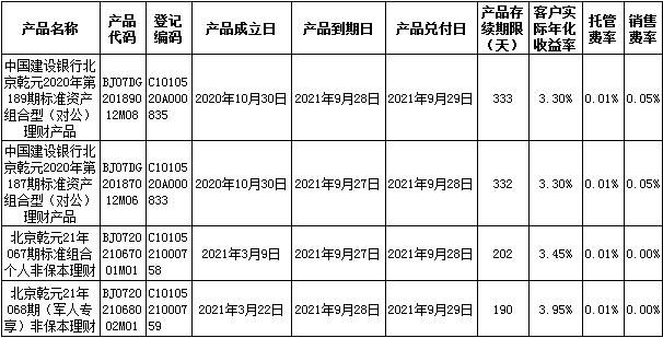 根据与投资者的约定,中国建设银行发行的下列理财产品已经到期并完成资金兑付,现将有关情况公告如下: