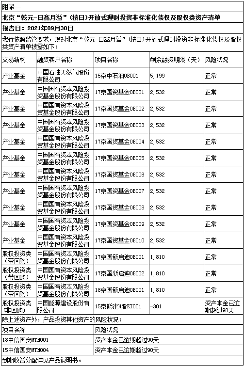 (2)本产品投资的债券18中信国安MTN001、15中信国安MTN004,金额各0.5亿元,未能按期足额兑付利息,已构成违约。上述资产在本产品组合资产中占比较小,本产品整体运作正常。