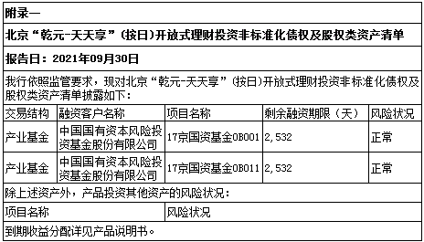 中国建设银行北京市分行“乾元-天天享”(按日开放型)人民币非保本理财产品季度投资管理报告